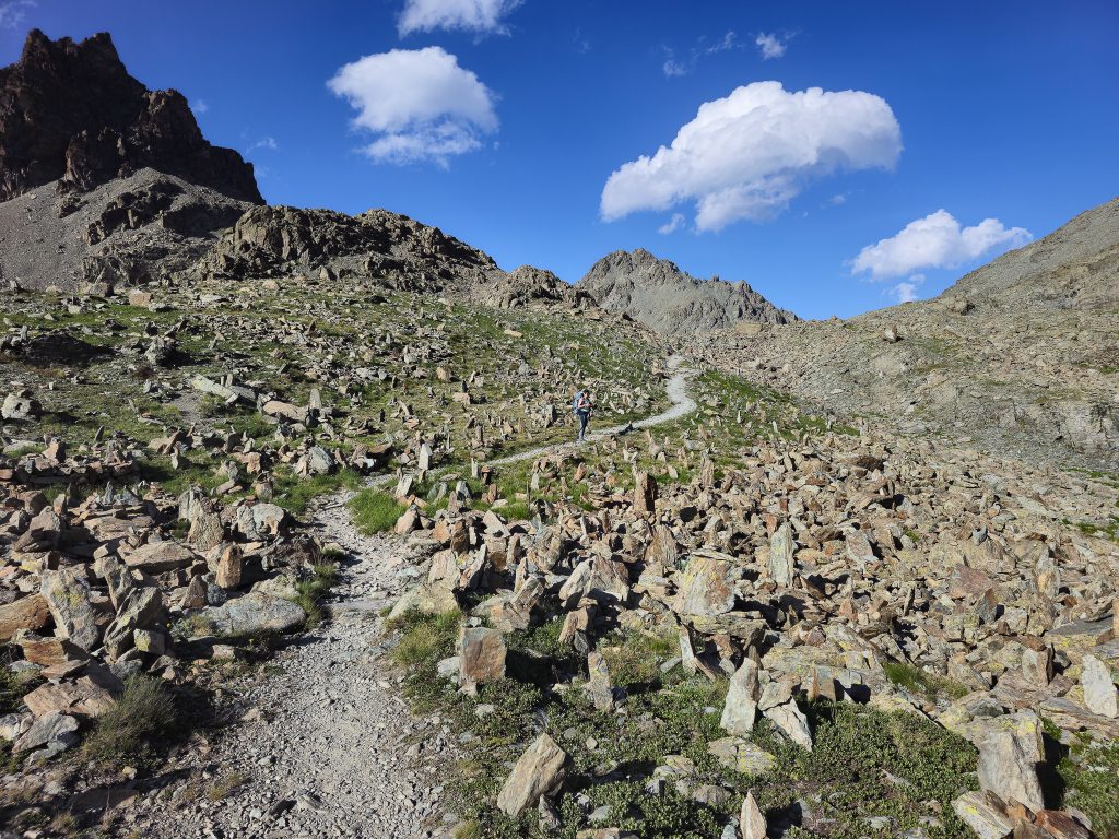 Ce matin nous voyons les premiers randonneurs arpenter cet espace et nous découvrirons que celui ci n’est pas si terrible. En effet le chemin est bien tracé sur le début de la montée vers le col de Vallante mais se corse un peu vers la fin avec pas mal de passages rocheux où il faut faire attention aux chevilles.