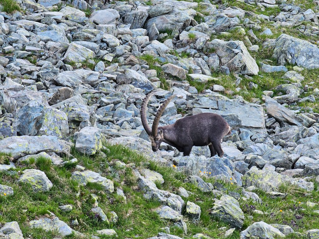 Après en avoir pris plein la vue, nous finissons par laisser ces petits bouquetins du soir pour nous diriger vers notre objectif, le premier lac en amont du grand lac du Viso.